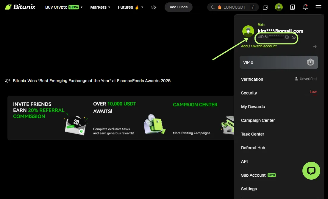 در ادامه آموزش آموزش پیدا کردن UID Bitunix را مرحله به مرحله میبینید. این بخش برای کاربرانی است که از مرورگر استفاده میکنند و نیاز فوری دارند.