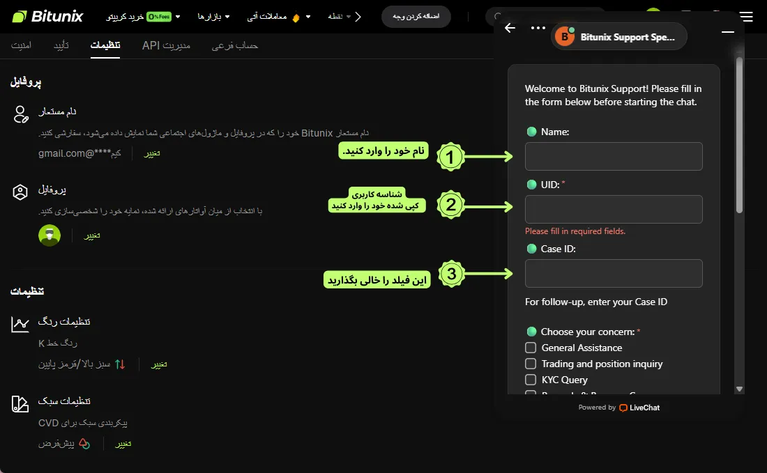 در این مرحله توضیح میدهیم چگونه میتوانید با استفاده از UID درخواست پشتیبانی ثبت کنید.