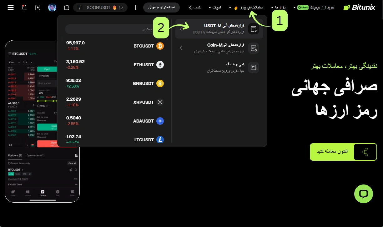 - از منوی بالا، بخش Futures را انتخاب کنید.