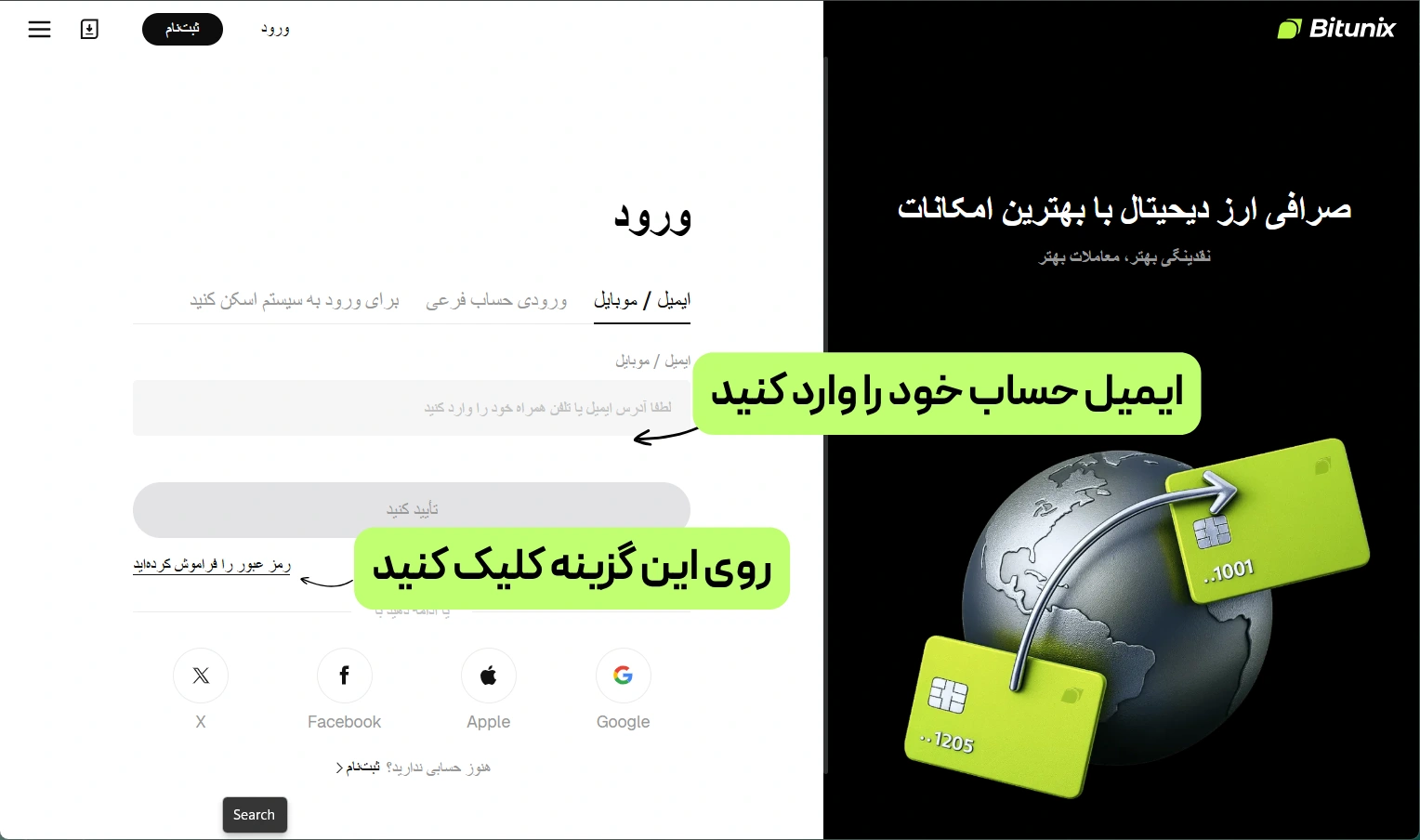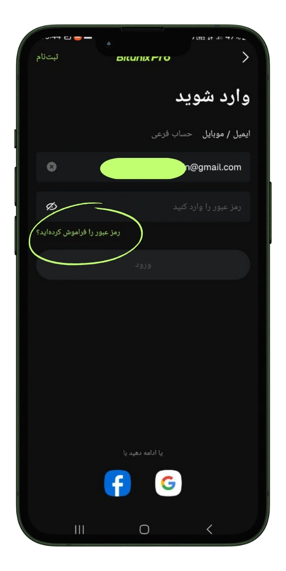 مراحل بازیابی رمز عبور در اپلیکیشن بیت یونیکس