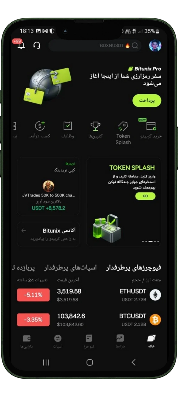 - اپلیکیشن Bitunix را باز کنید.