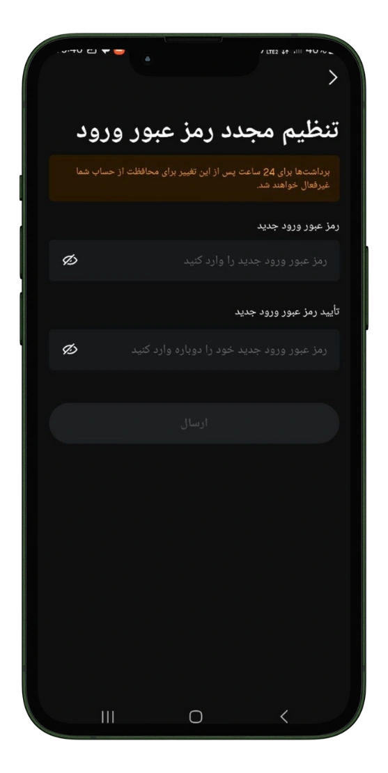 تغییر رمز عبور در اپلیکیشن