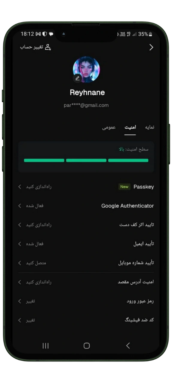 - وارد منوی «امنیت حساب» شوید.