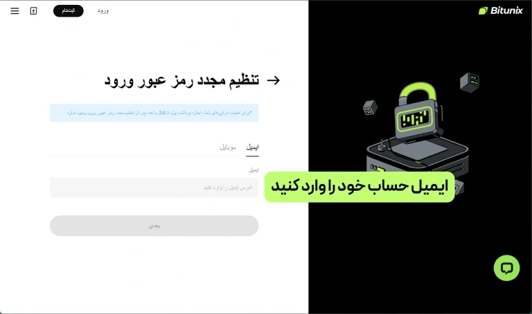 در ادامه تمام مراحل بازیابی رمز عبور در وب سایت رسمی Bitunix آورده شده است تا با اطمینان و بدون خطا رمز جدید تنظیم کنید.