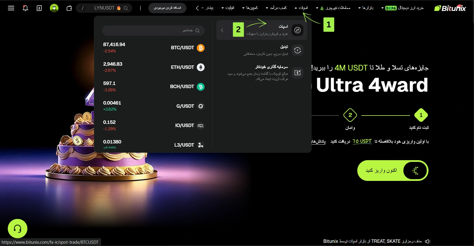 ورود به سایت صرافی Bitunix و دسترسی به نمودار
