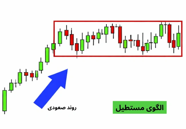 الگوی مستطیل نشان دهنده نوسان قیمت بین حمایت و مقاومت و توقف موقت بازار است. با شکست این محدوده، قیمت معمولاً در جهت روند قبلی حرکت قوی خود را ادامه می دهد؛ شکست رو به بالا سیگنال خرید و شکست رو به پایین سیگنال فروش است.این الگو به معامله گران کمک می کند نقاط مناسب ورود در جهت شکست را شناسایی کنند.