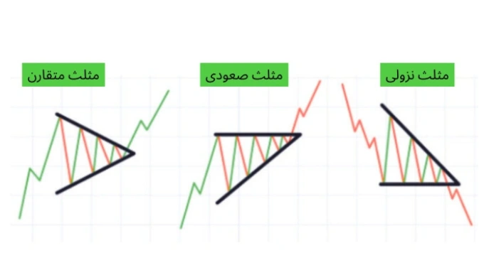🔻الگوی مثلث (متقارن، صعودی، نزولی)